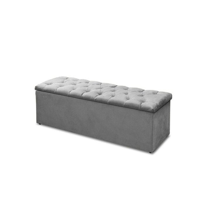 Calçadeira Recamier Baú Casal King 190cm Sofia Suede Cinza Cinza