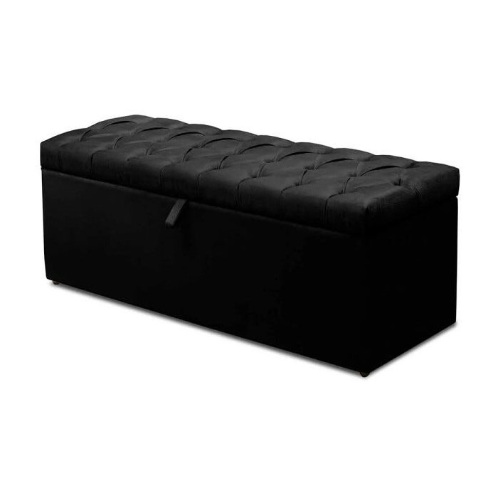 Calçadeira Recamier Baú Casal Queen 160cm Italia Suede Preto Preto