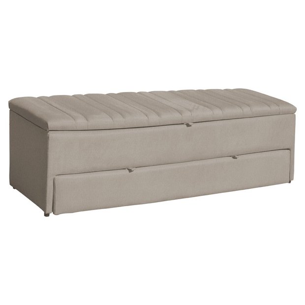 Calçadeira Recamier Baú Sapateira Casal Queen 160cm Ayla Suede Tampo Reto - Estopar Ayla 160cm Suede Suede Bege