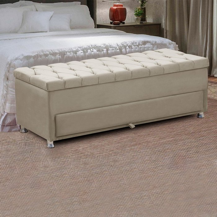 Calçadeira Sapateira Baú Munique 1.40 Veludo - Star Confort Bege Marfim Veludo