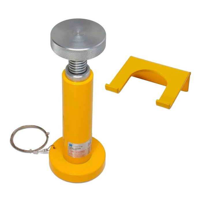 São dispositivos de retenção mecânica, obrigatórios conforme a NR12 do Ministério do Trabalho, utilizados para travar o martelo da prensa durante as atividades de manutenção (troca de ferramenta, ajustes, paradas programadas). Tem a função de suportar o peso do martelo durante a atividade de troca de ferramentas. O calço CA deve ser interligado mecanicamente através de seu cabo de aço ao atuador de uma chave de intertravamento de segurança1), monitorados por relé de segurança CP-D / CPA-D. A chave de segurança monitora a retirada do calço de segurança da posição de repouso, em consequência disso, impede o seu funcionamento durante a atividade. Principais Características: Diversos modelos com alturas diferentes e ajustáveis; Suporta até 20 toneladas; Podem ser utilizados em prensas ou similares; Atende a NR12 do Ministério do Trabalho; Robusto; Alta confiabilidade. Código: CA5090 Altura Mínima (mm): 500 Altura Máxima (mm): 900
