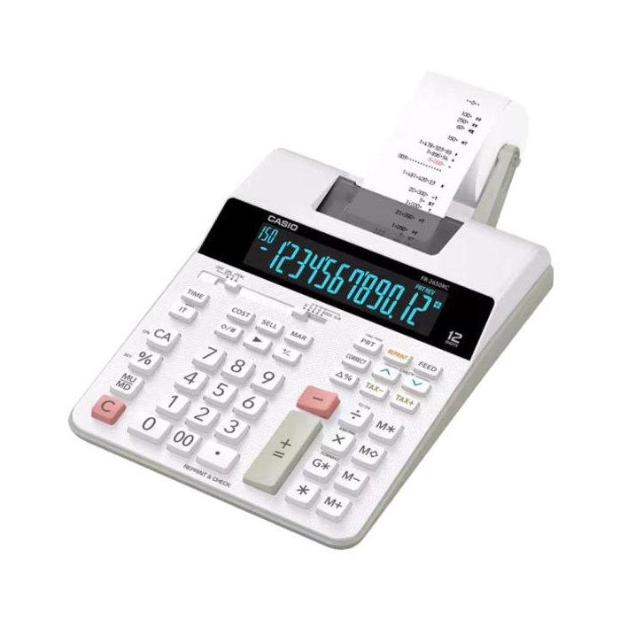 A Calculadora Com Bobina Casio FR-2650RC é uma solução eficiente para cálculos financeiros e comerciais, com um visor de 12 dígitos retroiluminado que facilita a visualização em ambientes com pouca luz. Seu teclado é bem distribuído, oferecendo números e funções essenciais para cálculos rápidos, como cálculo de porcentagem, taxas e arredondamento. Contando também com funções práticas como reimpressão e correção (para apagar o último número digitado), além de relógio e calendário integrados. Ideal para ambientes de contabilidade, finanças e comércio, a FR-2650RC é perfeita para totalizações, subtotais e cálculos de custo, venda e margem, tornando-se uma ferramenta indispensável para escritórios e empresas. A Casio foi fundada no Japão em 1946 pelo Tadao Kashio, um engenheiro especializado em tecnologia, com o passar dos anos, a empresa se tornou líder no mercado mundial de produtos eletrônicos, buscando oferecer aos consumidores soluções e equipamento tecnológicos de qualidade. Atualmente, a marca é famosa por fabricar calculadoras, relógios, equipamentos de áudio e instrumentos musicais. Funções:Cálculo básico, Cálculo básico, Percentual básico (%), Cálculo aplicado, Revisão 150 etapas, Contador de itens, Cálculo médioAlimentação:Adaptador CA apenas, Desligamento automáticoDimensões:(L x P x A): 313 x 195 x 64.7 mm Peso: 620 gPesquisa:calculadora casio|casio|calculadora de bobina|calcuiladora bobina|bobina|calculadora branca|branca|calculadora de papel|12 digitos|calculadora de 12 digitos • Impressão em linha • Impressão em 2 cores • Função Reimprimir/após impressão • Função de relógio/calendário • Máquina de calcular • Revisão 150 etapas • Impressão de 2 linhas por segundo • Número de dígitos: 12 dígitos Visor de cristal líquido: • Amplo visor • Sinais de comando de funções • Marcadores de vírgula a cada 3 dígitos Principais características: • Teclas plásticas Função das teclas: • Teclado com memória • Tecla Shift (▶) • Troca de sinal (+/-) • Mark-up/Mark-down Memória: • Total geral (G*) • Memória independente Configurações de formato de exibição: • Seletor decimal (3/2/0/ADD₂) • Seletor de arredondamento (F・5/4) • Impressão em linha • Impressão em 2 cores • Função Reimprimir/após impressão • Função de relógio/calendário • Impressão de 2 linhas por segundo