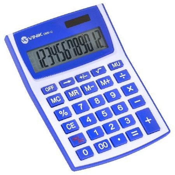 As calculadoras Vinik são práticas, modernas e com design ergonômico. Produzidas pensando no seu dia a dia, a Calculadora Vinik possuí as operações mais utilizadas em sua rotina, seja no escritório, estabelecimento comercial, nas aulas ou em sua casa e feita especialmente com números grandes. A Calculadora de Mesa Vinik possuí um eficiente e moderno sistema que funciona com energia solar e bateria, ainda possuem um visor com 12 dígitos, e o recurso de desligamento automático. Além das quatro operações básicas realizam cálculo de porcentagem, cálculo com memória e raiz quadrada, função mais ou menos e função apagar. Dados técnicos 12 Dígitos Visor em Lcd Carregamento Energia solar ou Pilha