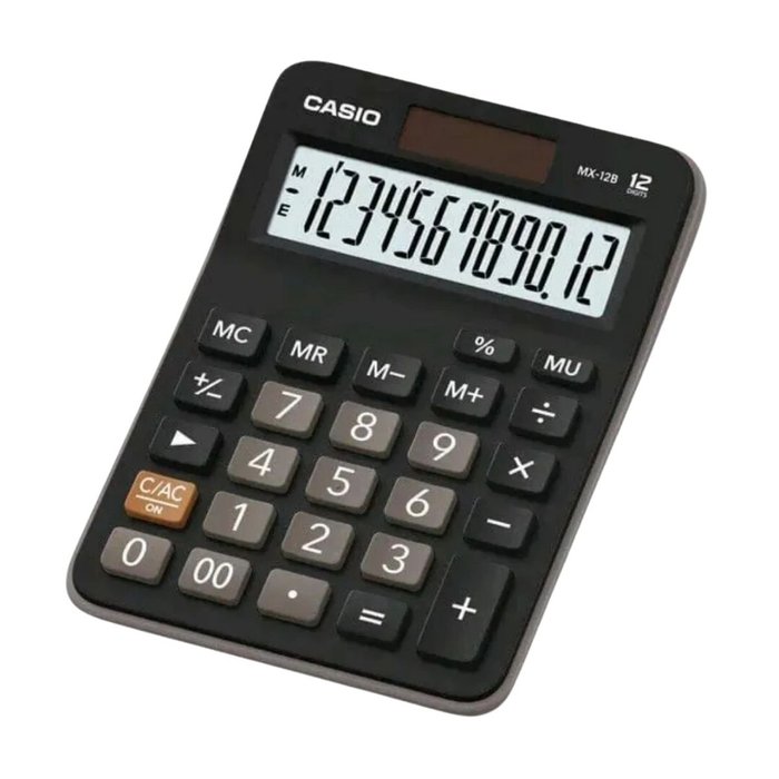 A calculadora de mesa Casio de 12 dígitos modelo MX-12B é recomendada para o uso em escritórios, escolas e comércios em geral.