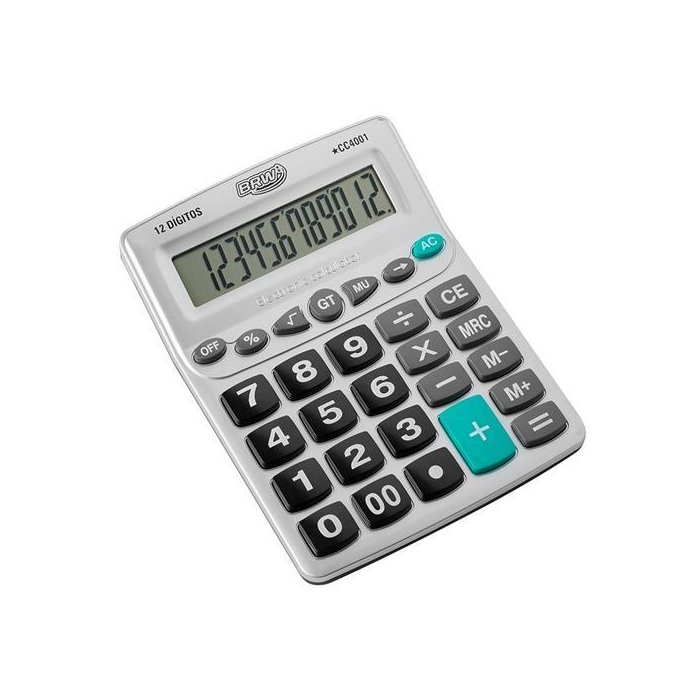 Calculadora de mesa 12 dígitos funciona com pilha. Teclas extra grande.