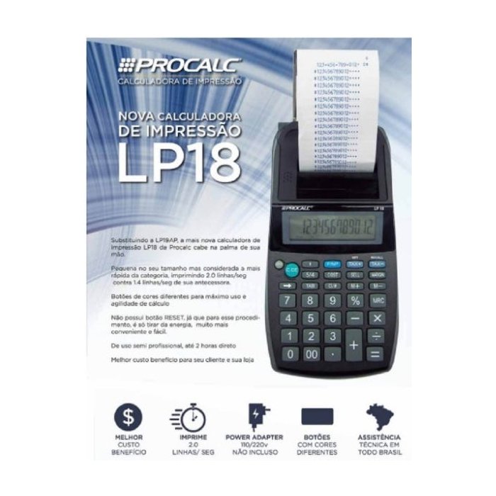 Substituindo a LP19AP, a mais nova Calculadora de Impressão LP18 da Procalc cabe na palma de sua mão. Uso semi profissional de até 2 horas.