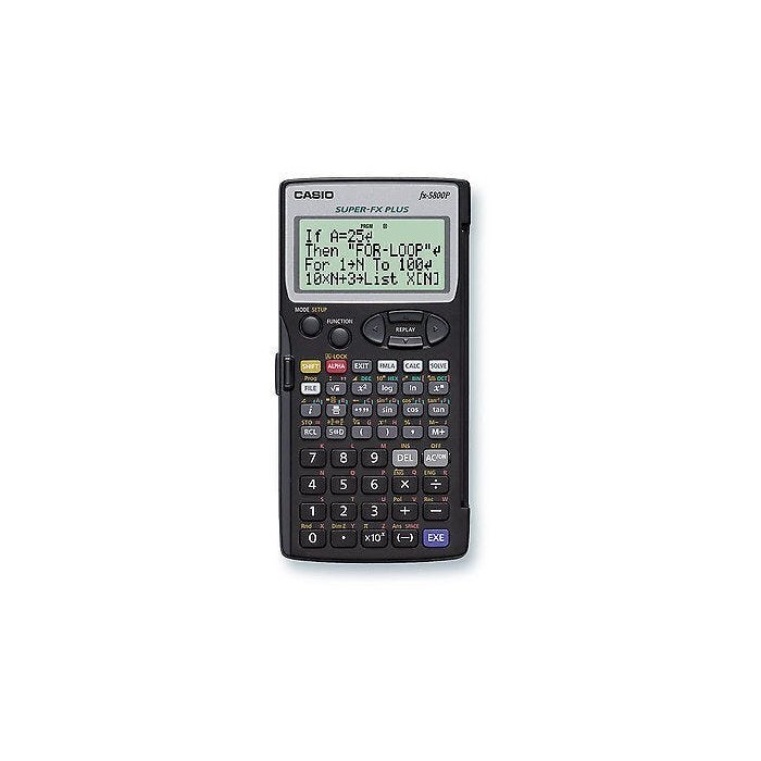 Calculadora Programável Cientifica Casio FX-5800P-W-DH Com manual em Inglês 12 meses de garantia Categoria Modelos Programáveis Função Número 664 Resolução da tela 31 × 96 No Color Display Bases passo Mantis + 10 + 2 Textbook Natural Há Ver Há matriz de cálculos Avançada Estatística No Mountain