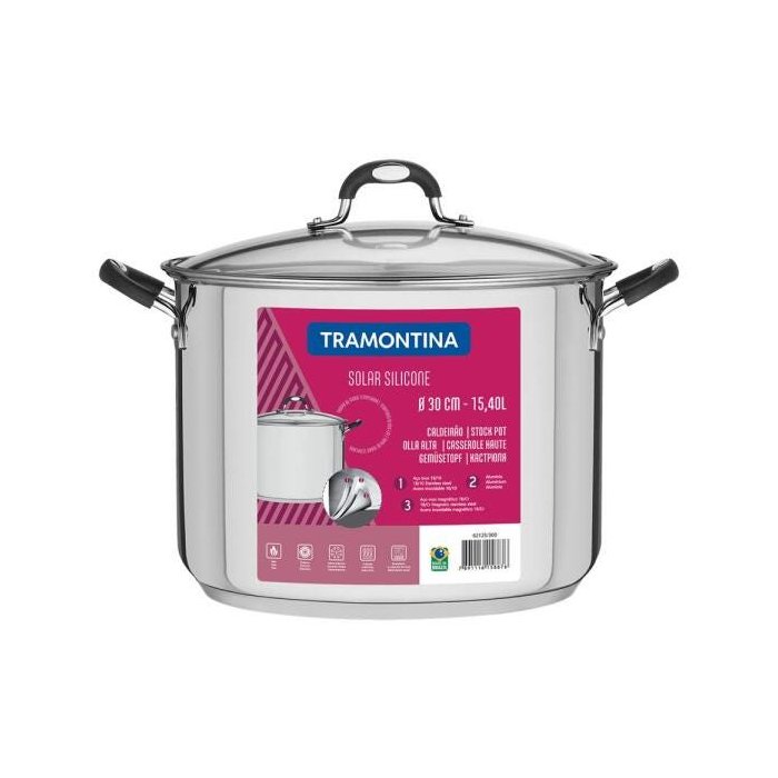 Caldeirão Tramontina Solar, Aço Inox, 30CM, 15,4 Litros, Tampa Vidro - 62125/300