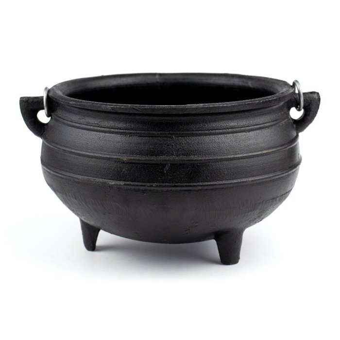 Após ser lavado secar em fogo baixo. O caldeirão é um símbolo típico e poderoso em várias culturas principalmente na Wicca e umbanda. é um instrumento de força mística, magia e transformação. As bruxas têm muito usos práticos para caldeirões.