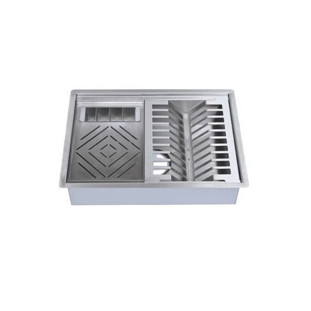Seu sistema com módulos organizadores removíveis permite escorrer pratos, copos e talheres com praticidade, mantendo a bancada organizada. Além disso, sua tampa funcional possibilita utilizar o espaço de forma versátil quando a calha não estiver em uso.