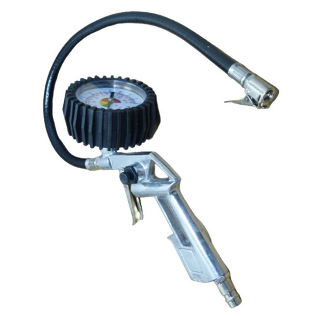 Com mangueira flexível e bico prendedor de fácil operação, é ideal para inflar, esvaziar e medir a pressão de pneus de carros, motos, bicicletas, utilitários, entre outros.