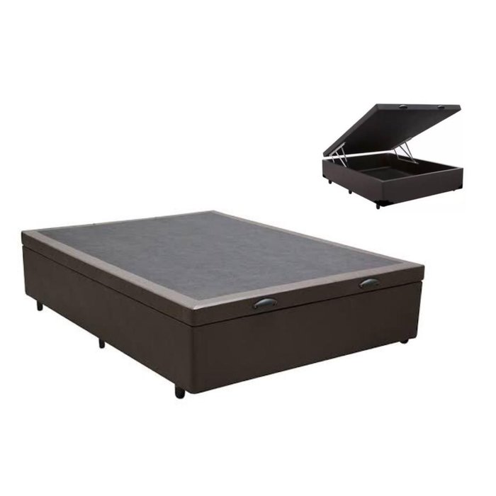 Cama Báu Box Base Casal Sintético Marrom com Pistões a Gás.