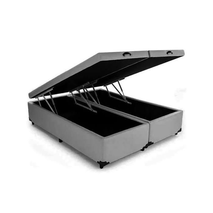 Cama Báu Box Base King Size Bipartido Sintético Cinza com Pistão a Gás. Rc