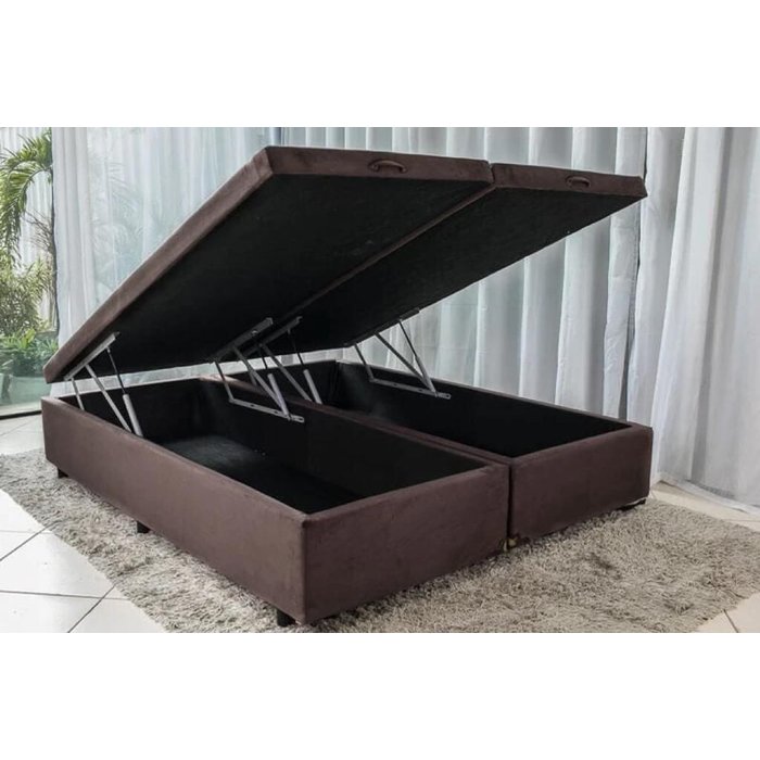 Cama Báu Box Base Queen Bipartido Suede Marrom com Pistão a Gás.