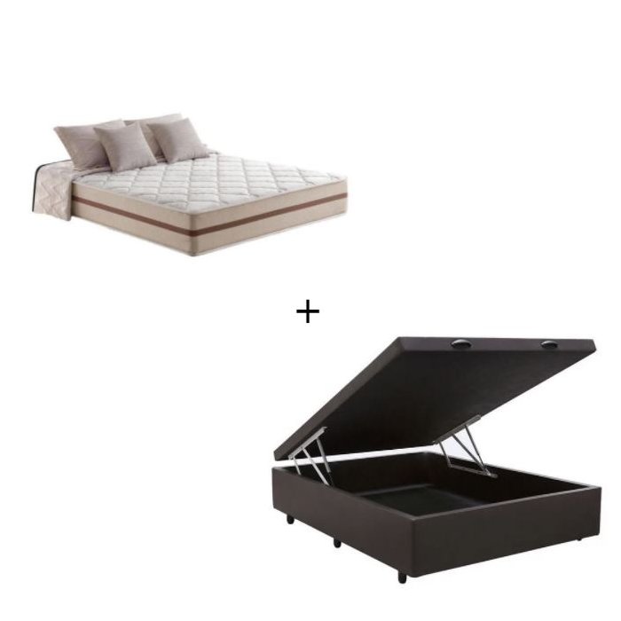 Cama Baú Box Viúva Tecido Sintético Marrom com Colchão Pillow Angel - Bello Box - Molas Ensacadas