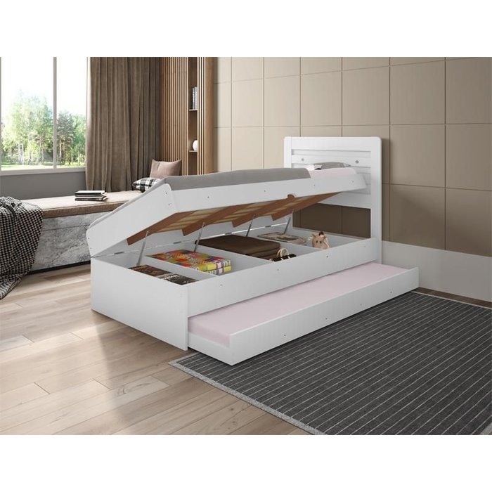 Cama Baú Framar Móveis Larissa Solteiro com Auxiliar Cor Branco Branco