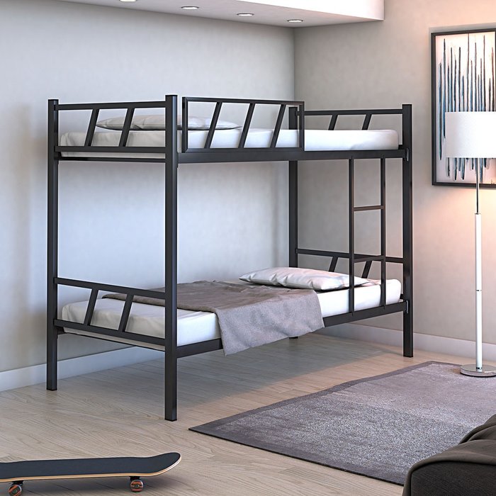 Cama Beliche Bruna Quarto Solteiro Estrutura De Ferro:Preto Preto
