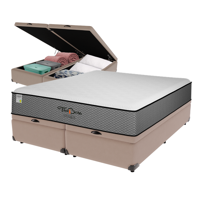 Cama Box Baú Bege e Colchão King The Boss Espuma D33 Unique