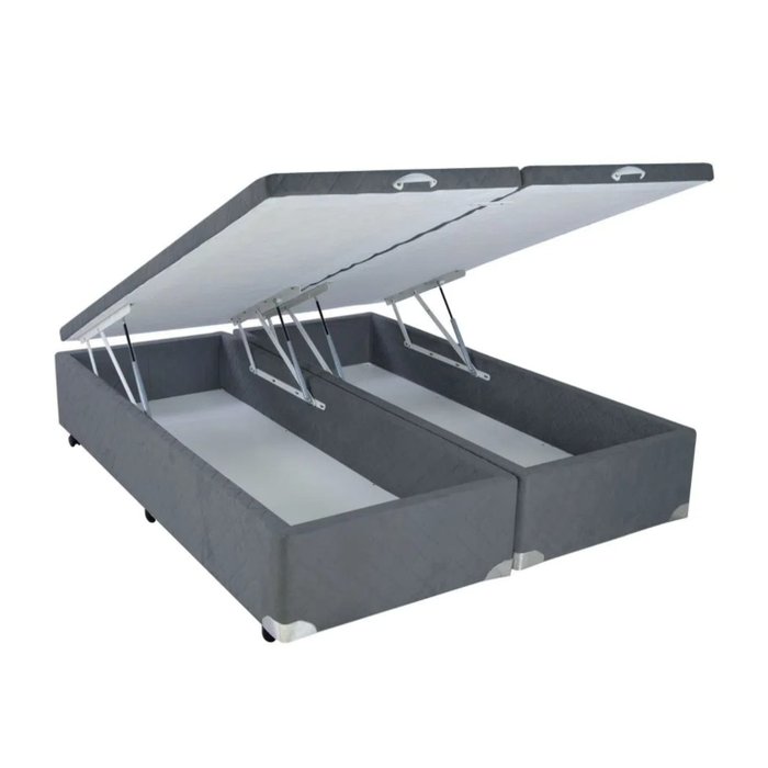 Cama Box Baú Blindada Queen Size Bi-Partida 158x198x42 Suede Cinza Alfa