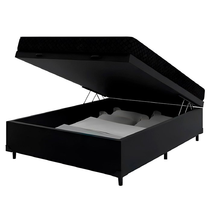 Cama Box Baú Casal 138 Tecido Sintético Preto com Colchão Extra Firme Espuma Semi Ortopédica D28 Pre Preto