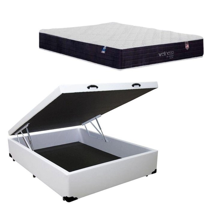Cama Box Baú Casal Ak Colchão Molas Em Sacadas Colchobel Cor: Branco