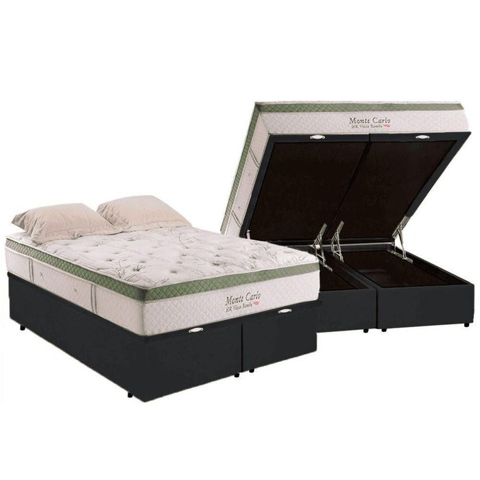Cama Box Baú Casal Bipartida com Colchão Herval Monte Carlo Molas Ensacadas 138x188x77cm Ms Preto