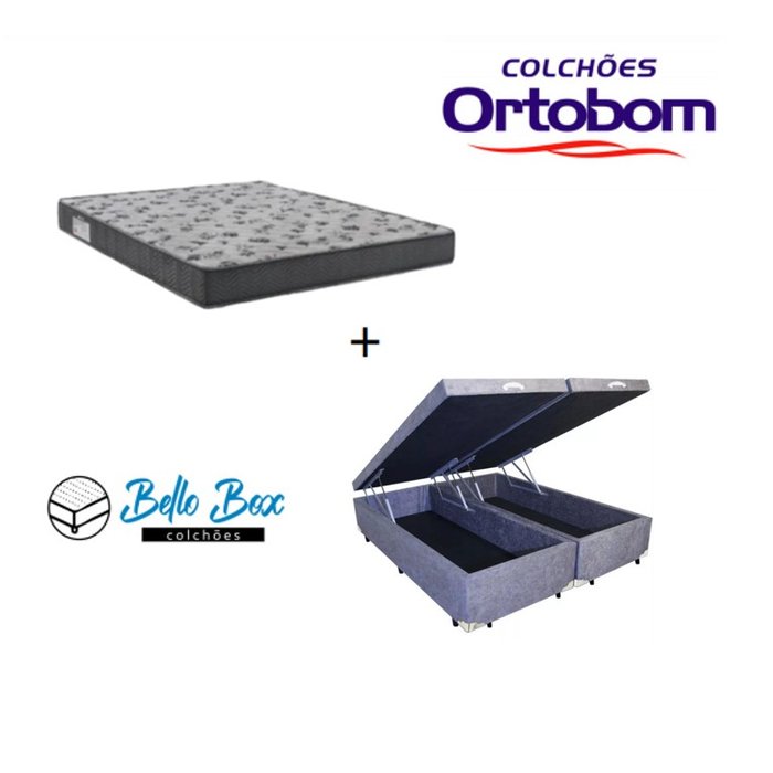 Cama Box Baú Casal Bipartido 138 Suede Cinza com Colchão De Espuma - D33 Ortobom ISO 100 60x138x188