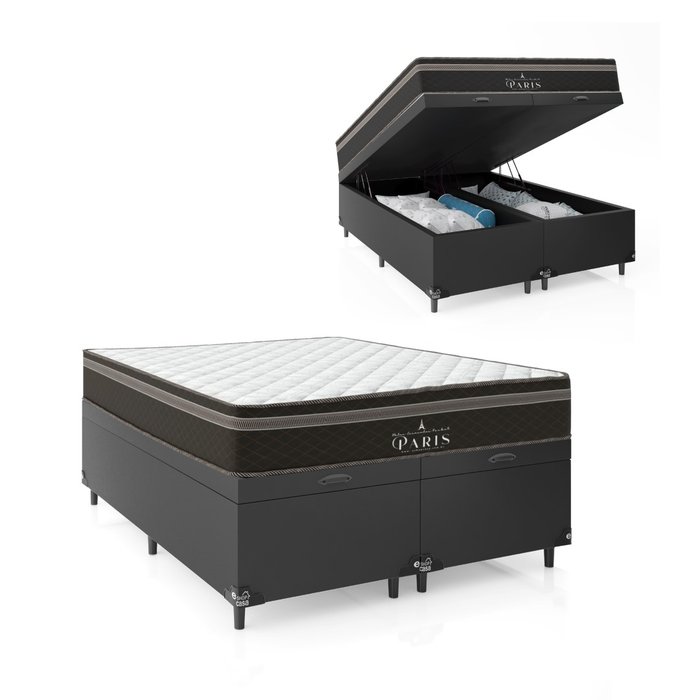 Cama Box Casal com Baú Bipartido + Colchão Paris Molas Ensacadas Pocket - e-Shop Casa