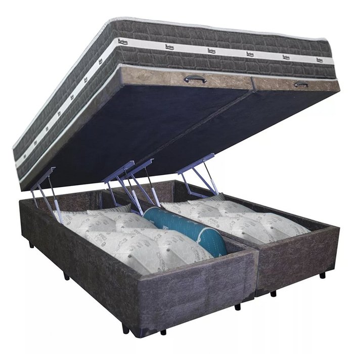 Cama Box Baú Casal Bipartido Suede + Colchão Anjos Black Graphite Molas Ensacadas 138x188x64cm