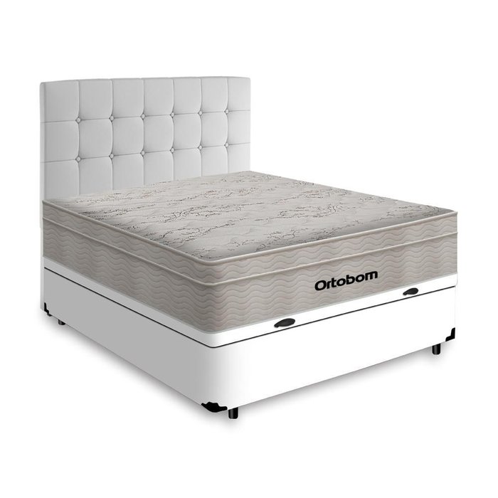 Cama Box Baú Casal + Cabeceira Cassis e Colchão Ortobom Airtech Springpocket 138cm Branco