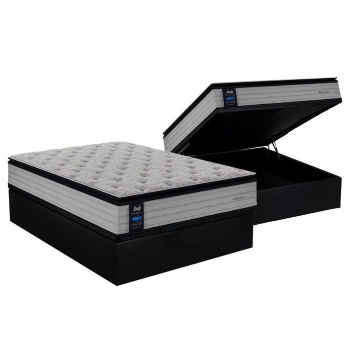 Cama Box Baú Casal: Colchão Molas Sealy Passionbase Suede Black(138x188)