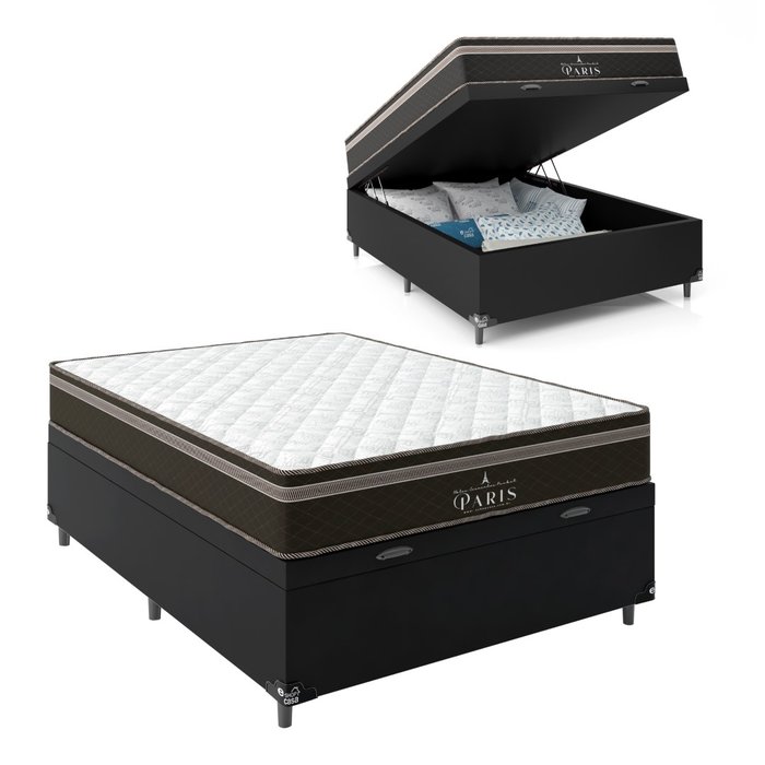 Cama Box Casal com Baú + Colchão Paris Molas Ensacadas Pocket - e-Shop Casa