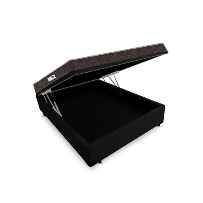 Cama Box Baú Casal Colchão Top Line Mola Bonnel + Box Suede Preto Serra Negra 63x138x188