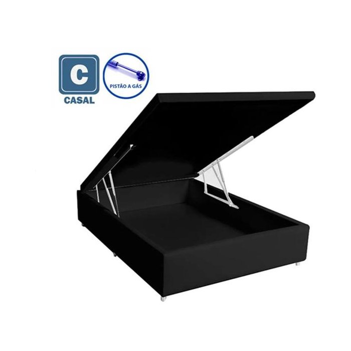 Cama Box Baú Casal Gold AColchões Síntetico Preto 41x138x188