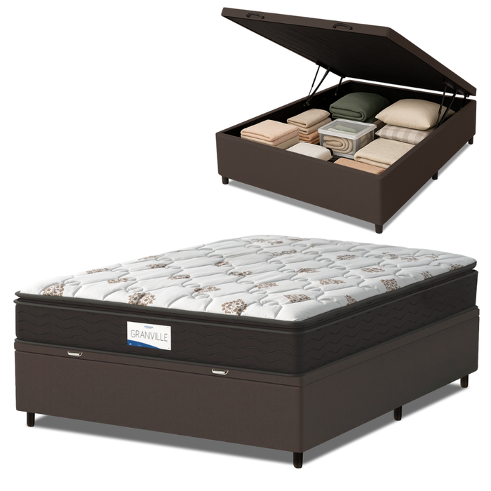 Cama Box Baú Colchão Casal Probel Molas Ensacadas Granville Pillow Top 138x188x69cm Marrom /