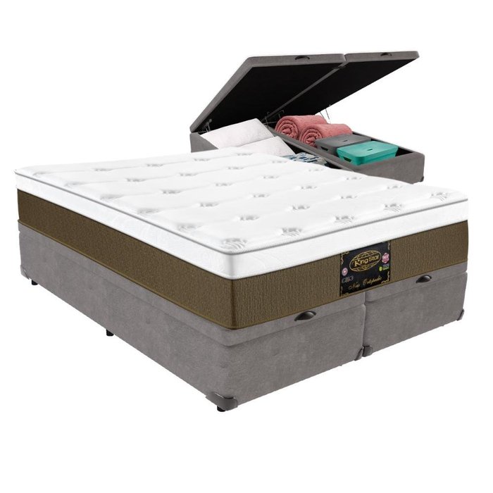 Cama Box Baú Colchão Ortopedic Queen 158x198 King Star Cinza