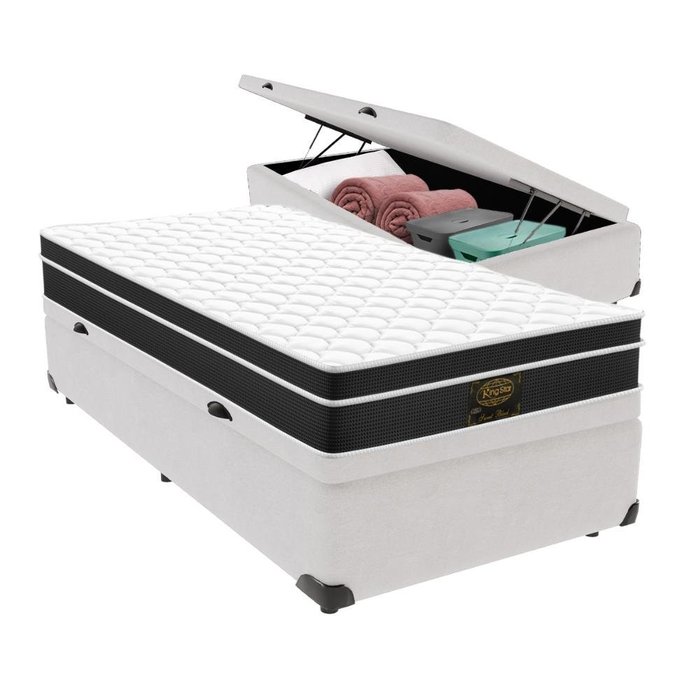 Cama Box Baú + Colchão Sweet Black Solteiro King Star Branco