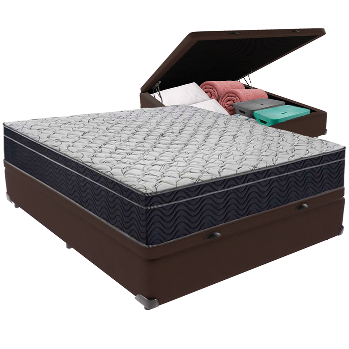 Cama Box Baú e Colchão Airtech 150 Espuma D45 Casal Ortobom: Marrom