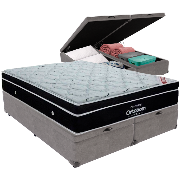 Cama Box Baú e Colchão Elegant Molas Ensacadas King Ortobom: Cinza