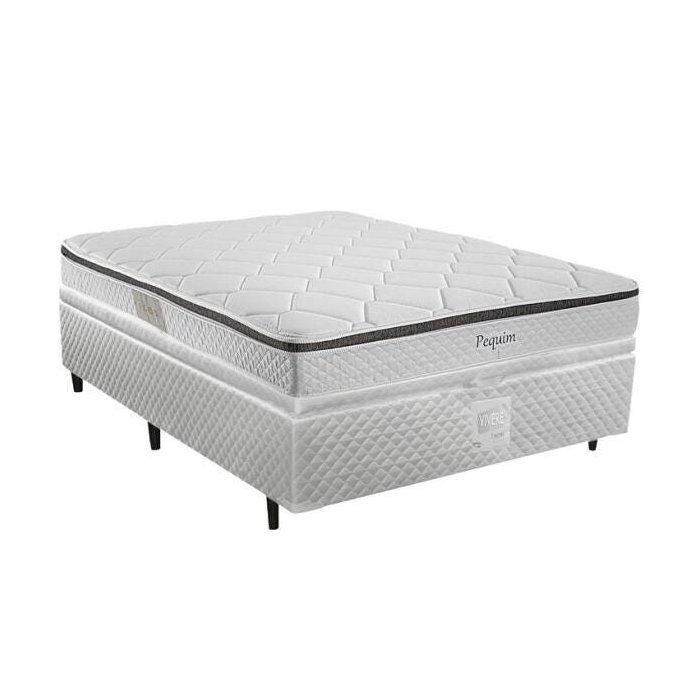 --- Colchão --- Bordas de espuma de alta densidade; Molas ensacadas; São 194 molas p/m² fabricadas com fio de aço especial (alto teor de carbono) de 2,00mm que proporcionam grande amortecimento ao corpo; Conforto firme; Camadas de espuma de alta densidade; Isolante Feltro Resinado; Tampo tecido Malha 100% poliéster; Faixa tecido Plano 100% poliéster; Tecido Antiderrapante; Lateral com Ultrassom (respiro do colchão, renovando o ar interno, eliminando proliferação de fungos e bactérias proveniente da umidade do ar); Faixinha tecido Chenille 100% olefinic; Bordado Pillow Top One Side.