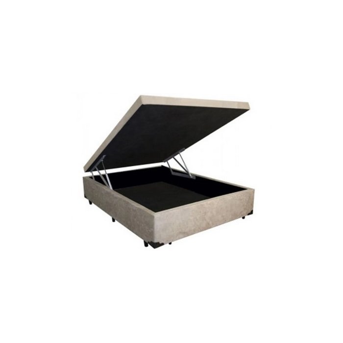 O Box Baú possui um sistema de amortecimento a gás que evita o esforço na hora de abri-lo, alça de apoio para o colchão não se deslocar quando você abrir o box e pés rosqueáveis que se ajustam aos desníveis do piso e tecido anti-derrapante no tampo.