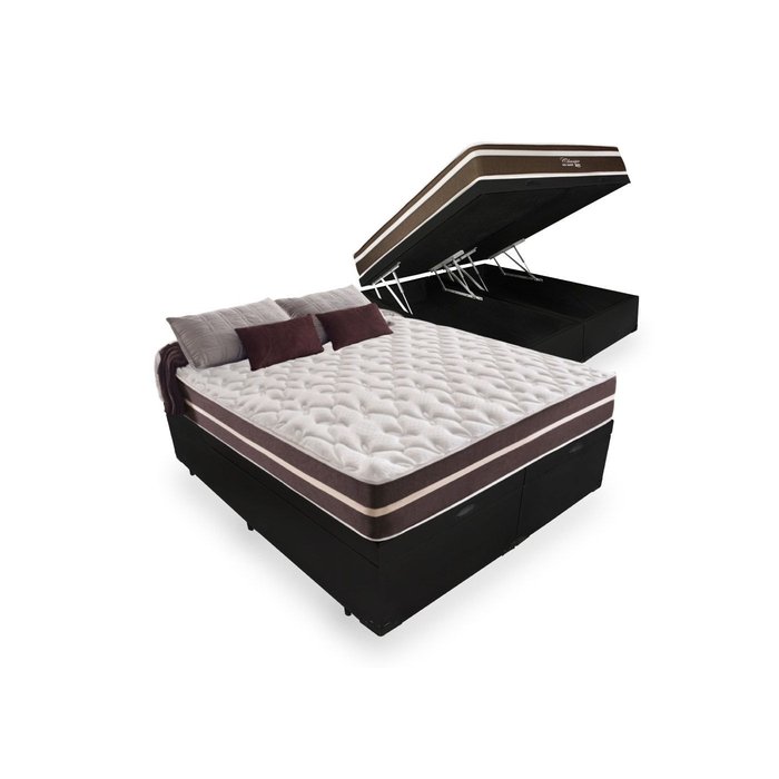 Cama Box Baú King 193 Bipartido Tecido Sintético Preto com Colchão Little Angel - Bello Box - Mola Superlastic 62x193x203cm O Conjunto Cama Box Com Baú King Bipartido com Colchão de Molas Superlastic Little Angel Bello Box é uma combinação que oferece uma solução completa, praticidade e agilidade na aquisição de sua nova cama. O Colchão De Molas Superlastic Little Angel é indicado para pessoas de até 130kg proporcionando conforto macio, o que lhe confere conforto extra durante o sono sem comprometer sua coluna. A Base Box com Baú é a alternativa ideal para maior aproveitamento do quarto, pois oferece espaço extra e praticidade, é formada por duas camas baú com 96cm de largura cada, que facilita a passagem por portas e corredores. *Molas Superlastic: Produzida com a combinação da tecnologia de arame fino de alta-tensão com um design inovador. Molejo construído com molas contínuas entrelaçadas e helicoidais no sentido horizontal, sendo um processo de fabricação único, com mais flexibilidade e qualidade. Especificações Técnicas Colchão: - Marca: Bello Box. - Tipo de molas: Superlastic (mola de fio continuo). - Proteções: Antiácaro - Antialérgico - Antifungo - Antimofo. - Acabamento: Bordado em Matelassê. - Matéria prima: Espuma/Molas/Tecido. - Tipo de conforto: Intermediário macio. - Peso máximo recomendado: até 130Kg (por pessoa). - Garantia: 3 meses. - Dimensões do produto (altura x largura x comprimento) King: 22x193x203cm. Especificações Técnicas Baú: - Material: Madeira tratada. - Proteções: Antiácaro - Antialérgico - Antifungo – Antimofo. - Peso máximo recomendado: até 100kg (por pessoa). - Altura do baú: 40cm (35cm c/ 6cm dos pés). - Revestimento: Tecido Sintético. - Cor: Preto. - Marca: Bello Box. - Quantidade de Pés: 12 pés. - Garantia: 3 meses. - Dimensões do produto (altura x largura x comprimento) King: 40x193x203cm. *ATENÇÃO: Verifique se as dimensões dos produtos passam por elevadores, portas, escadas e corredores. Não nos responsabilizamos pelo transporte dos produtos por escadas, guinchos, içamento ou quaisquer outros meios específicos de transporte. - As imagens ambientadas são meramente ilustrativas e podem apresentar itens que não compõe o produto. - As cores do produto podem variar de acordo com o monitor, a iluminação do ambiente ou sua percepção visual. - Verifique se o local de entrega está apto a receber o produto com as dimensões informadas. - Para evitar imprevistos na sua entrega, confira as dimensões do produto no momento da compra e certifique-se de que ele passará por elevadores, portas, escadas e corredores.