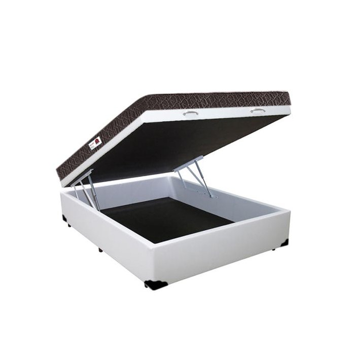 Cama Box Baú King Colchão Espuma D45 Bordado + Box Sintético Branco Serra Negra 62x198x203