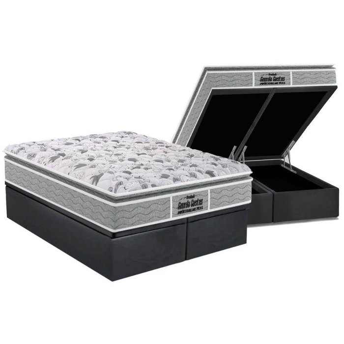 Cama Box Baú King: Colchão Ortopédico Probel D45 / EP Guarda Costas PróExtreme Plus Pillow Top