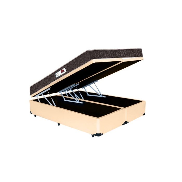 Cama Box Baú King Colchão Top Line Mola Bonnel + Box Bipartido Sintético Bege Serra Negra 63x193x203