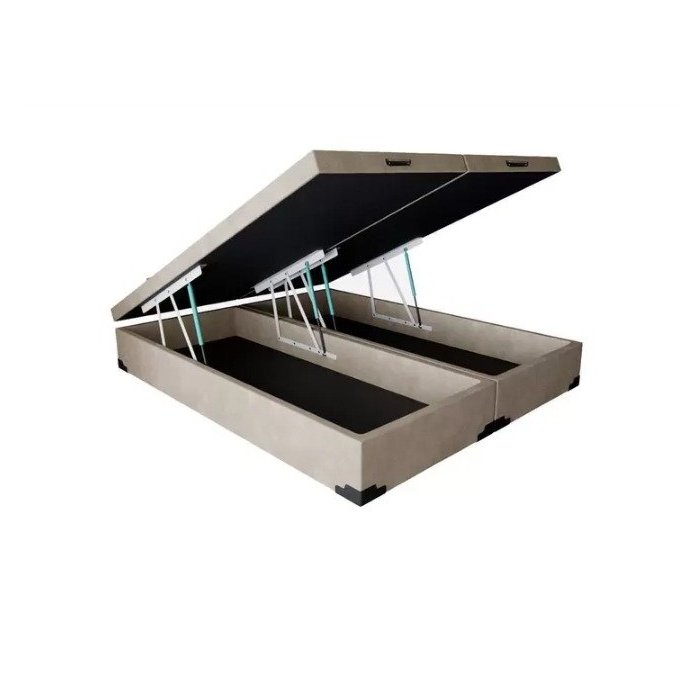 Cama Box Baú Queen Bege Bipartido com Pistão a Gás - 158x198x41