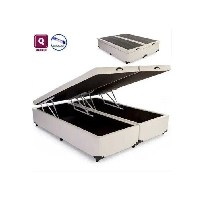 Cama Box Bi-partida Baú Queen Tecido Sintético - A Cama Box Queen Baú é perfeita para todas as pessoas precisam de uma cama grande e espaçosa mas sofrem com o problema da cama não passar na porta: Esse problema foi resolvido com a nova cama Bi-partida Queen. Funciona da seguinte maneira: E cama com dimensões de 158x198x40cm é composta de duas camas com dimensões 79x198x40cm e assim as duas partes são conectadas. Desse modo, torna-se muito mais fácil mover a cama e passar por áreas pequenas como portas, corredores e escadas. Assim que for colocada em seu lugar definitivo, por meio de uma junção elas são conectadas e formam assim uma só cama casal nas dimensões Queen (158x198x40cm). Uma outra grande vantagem dessa cama, permitindo que a roupa de cama, travesseiros, e diversos outros objetos possam ser guardados dentro da cama! Além de resistente e espaçosa, a Cama Box, ainda é prática, sendo assim muito simples e fácil utilizar, pode-se verificar pelas imagens como é simples utilizar o Baú da Cama Box. Material de alta qualidade que garante maior durabilidade e resistência ao produto. Especificações Técnicas da Cama Baú:- Material: Madeira tratada;- Proteções: Antiácaro, Antialérgico, Antifungo, Antimofo;- Peso máximo recomendado: até 100kg (por pessoa);- Altura do baú: 40cm (35cm com 6cm dos pés);- Revestimento: Tecido Sintético;- Cor: Bege.- Quantidade de Pés: 12 pés;- Material dos pés: Plástico;- Garantia: 3 meses;- Tamanho: Queen;- Dimensões do produto (altura x largura x comprimento): 40x158x198cm*ATENÇÃO: - Verifique se as dimensões dos produtos passam por elevadores, portas, escadas e corredores. - Não nos responsabilizamos pelo transporte dos produtos por escadas, guinchos, içamentos ou quaisquer outros meios específicos de transporte.- As imagens ambientadas são meramente ilustrativas e podem apresentar itens que não compõe o produto.- As cores do produto podem variar de acordo com o monitor, a iluminação do ambiente ou sua percepção visual.