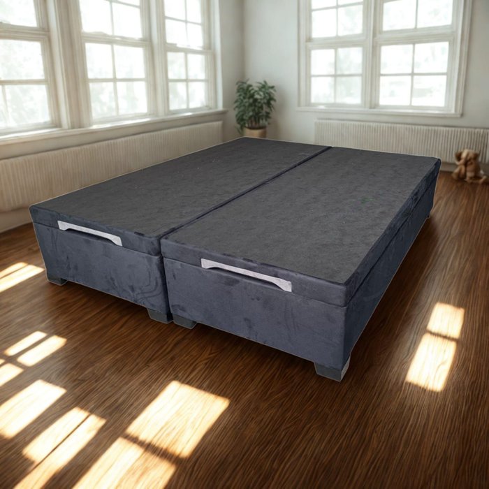 Cama Box Baú Suede Luxo - Gs Kamas - Acabamento Reforçado, Designer Exclusivo e Amplo Espaço 198x79x44cm (Queen Bipartido) - Cada Lado.