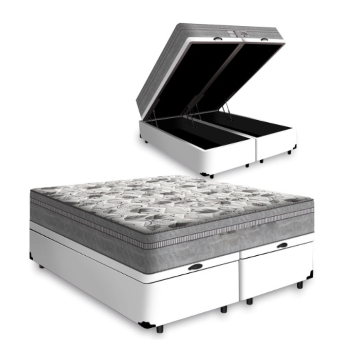 Cama Box Baú Queen Colchão Molas Bonnel + Box Bipartido Branca Sintética 39x158x198