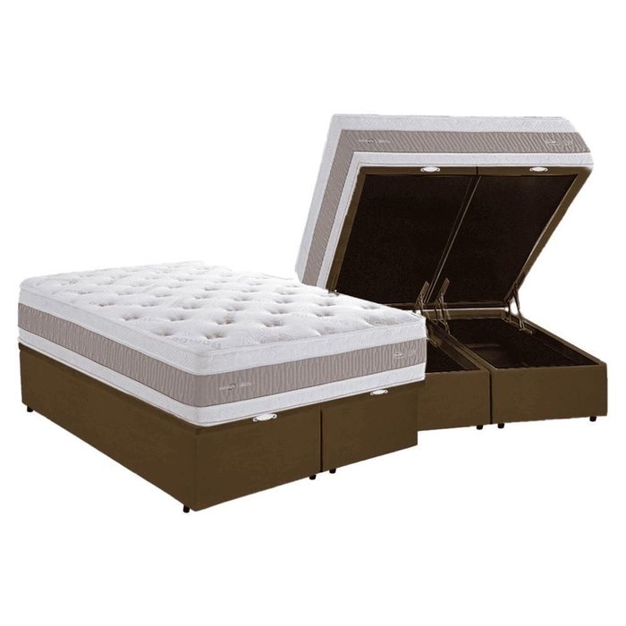 Cama Box Baú Queen com Colchão Herval C1666 Molas Ensacadas 158x198x78cm Ms Suede Marrom